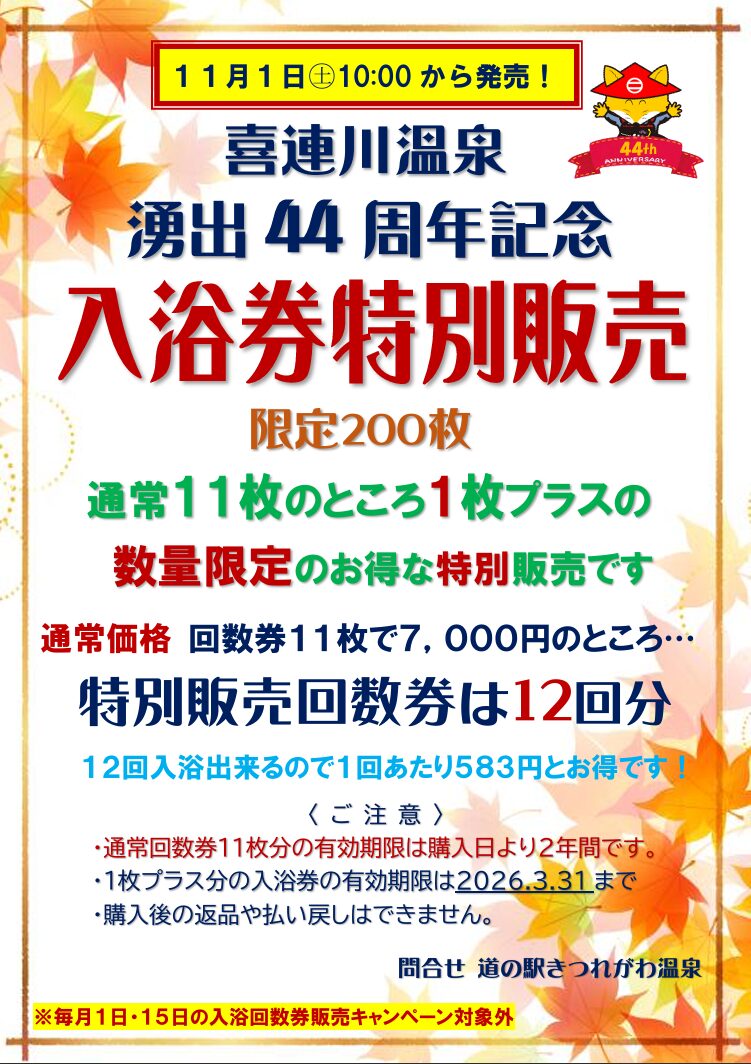 入浴券特別販売(温泉)2025年11/1㈯10:00販売開始