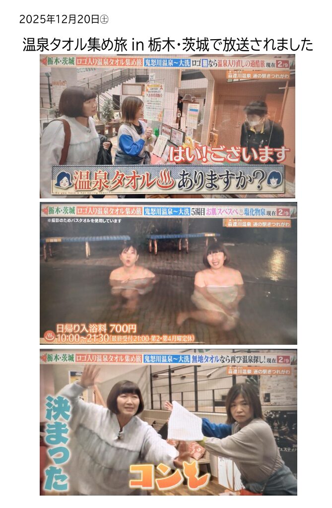 2025年12月20日㈯放送されましたテレ東土曜ゴールデン「温泉タオル集め旅20」に道の駅きつれがわ…詳細を見る