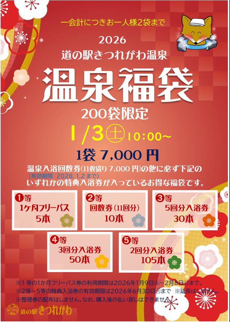 2026温泉福袋200袋限定販売(温泉)2026年1月3日㈯